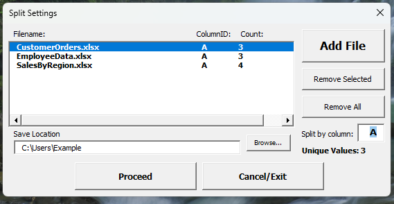 AutoSplit is a powerful, user-friendly Excel tool that automatically separates large datasets into individual files based on the value in a selected column โ all with just a few clicks. Whether you're working with customer data, sales reports, or departmental lists, AutoSplit helps you quickly segment and export tailored files without writing a single formula or macro.